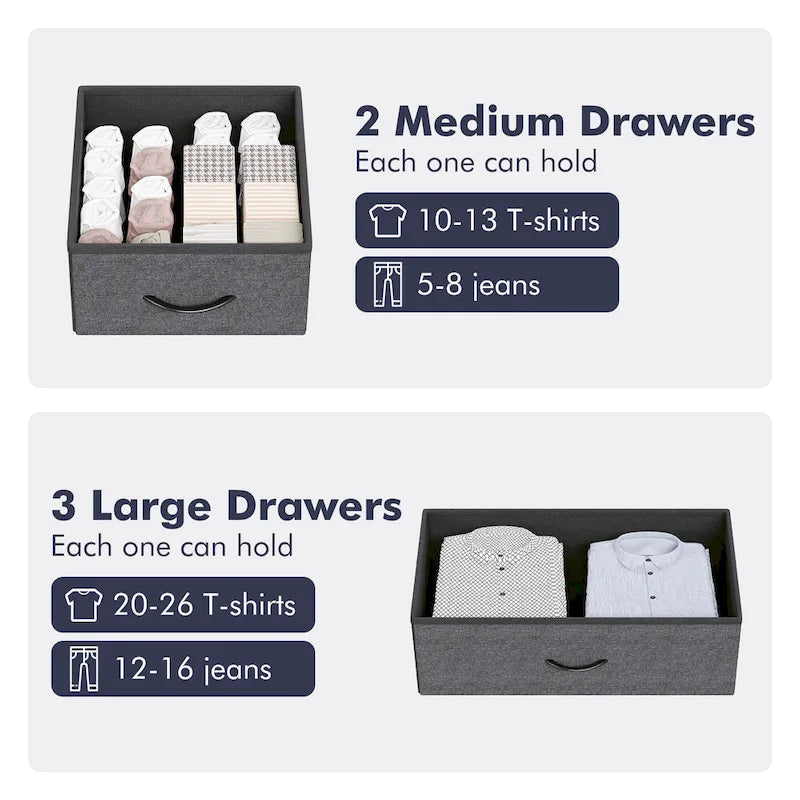Durable Storage Drawer:Features foldable storage drawers. Each fabric drawer offers large storage space, perfect for organizing clothes, toys, socks, underwear, scarves, blankets and other accessories.