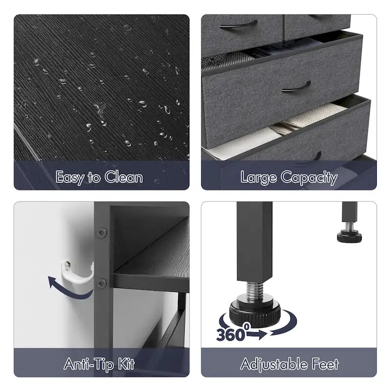 Sturdy Structure:The chest of drawer is made with sturdy metal frame, and its back is equiped with more reinforced crossbar, which offers high strength support and ensure years of use.