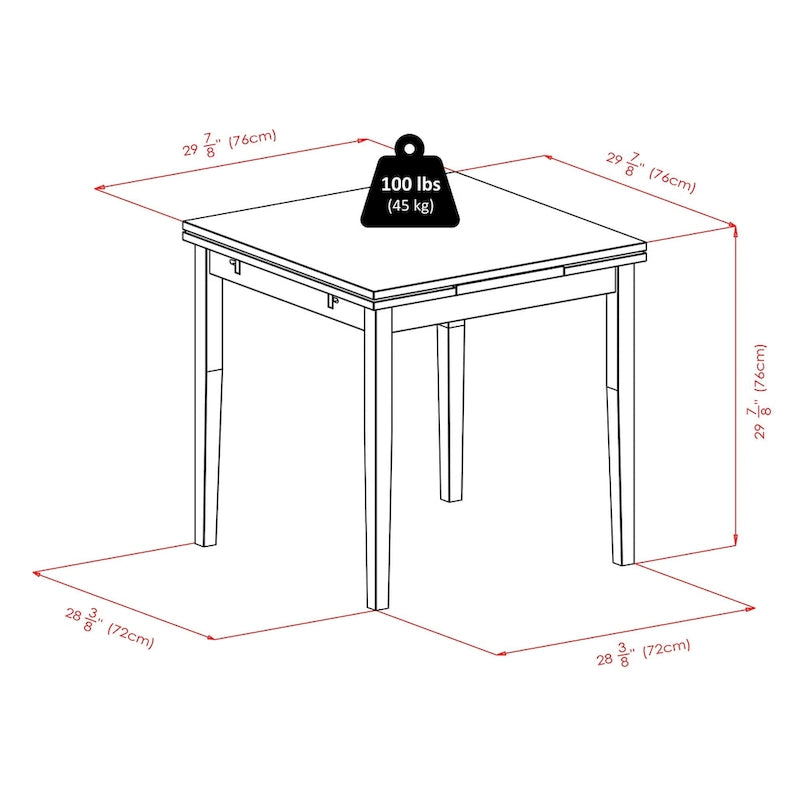 For smaller spaces, this Dining set is a smart choice. Extend the table to add more surface area whenever extra table space is needed, each leaf adds nine more inches of tabletop, making this an excellent choice for a studio apartment or kitchen. Conserve valuable space as the extensions conveniently tuck away within the table body for a compact footprint. Suitable for a variety of homes and functions, comfortably accommodating up to 4 guests. This set includes four classically designed chairs that are a perfect complement to the table. Constructed of sturdy solid wood for long lasting durability and finished in a rich walnut, this set can be incorporated effortlessly into nearly any existing decor.