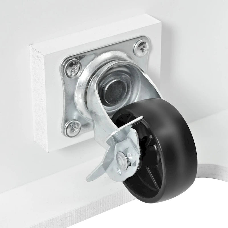 This mobile kitchen island on wheels is equipped with 5 universal wheels, 2 of which are lockable. The central placement of one wheel at the base ensures enhanced overall stability during movement.