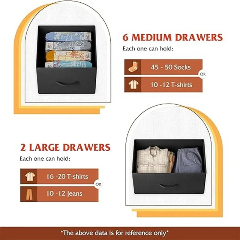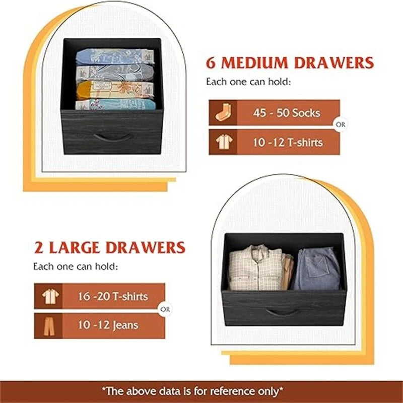 For All Storage Needs: With 8 large deep drawers, the dresser for bedroom provides endless organizational possibilities and can help you keep your home clear of clutter.