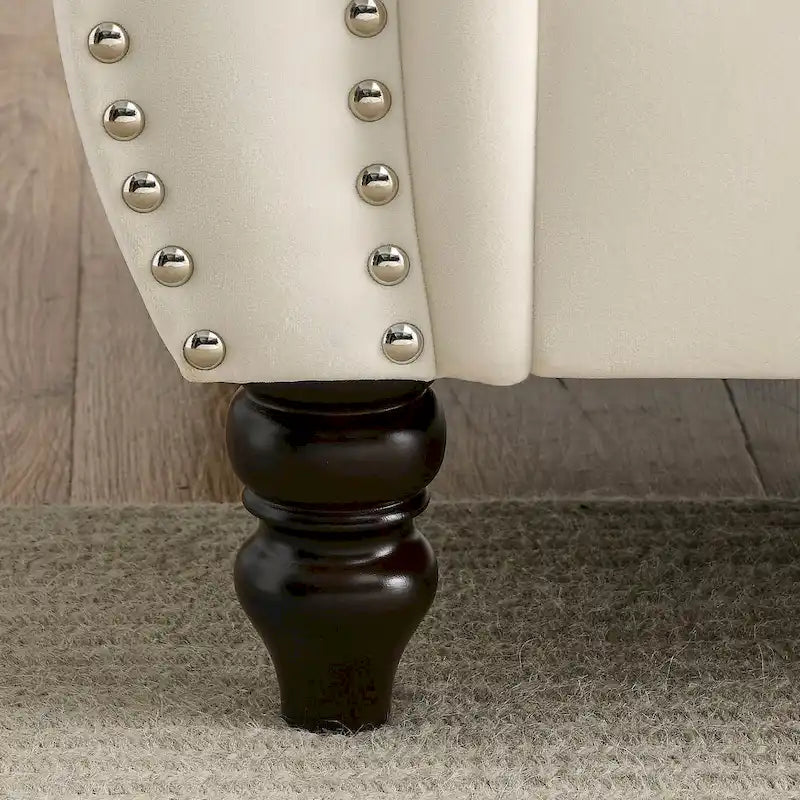 - Sturdy and durable. The frame of the sofa is made of solid wood for added sturdiness and durability. With comfortable foam, soft cushions supported by a curved spring structure and tufted buttons on the back and arms, this sofa is perfect for those who want to rest after a busy day.