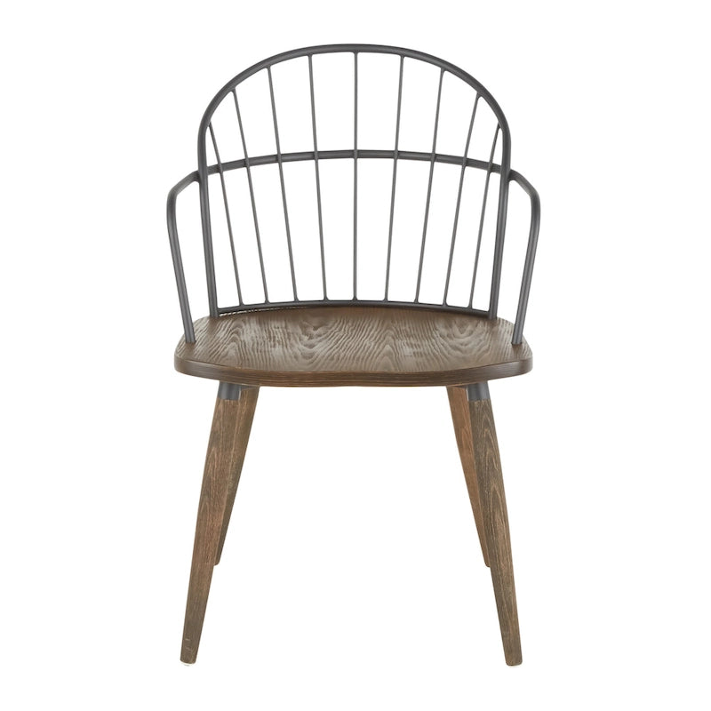 Add a touch of rustic sophistication to your home or office with the Carbon Loft Ellul Industrial Chair. This updated spindle-back chair features a sturdy wood construction with black metal backrest and armrests for a modern twist on classic country style. Available in both dark walnut and white washed finishes, this versatile chair can be used as an accent piece or as a dining chair. With a weight limit of 250 lbs., it is perfect for indoor use.