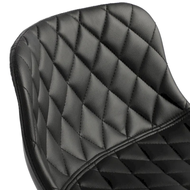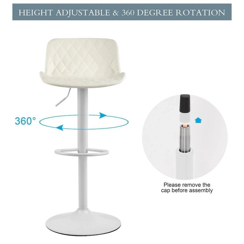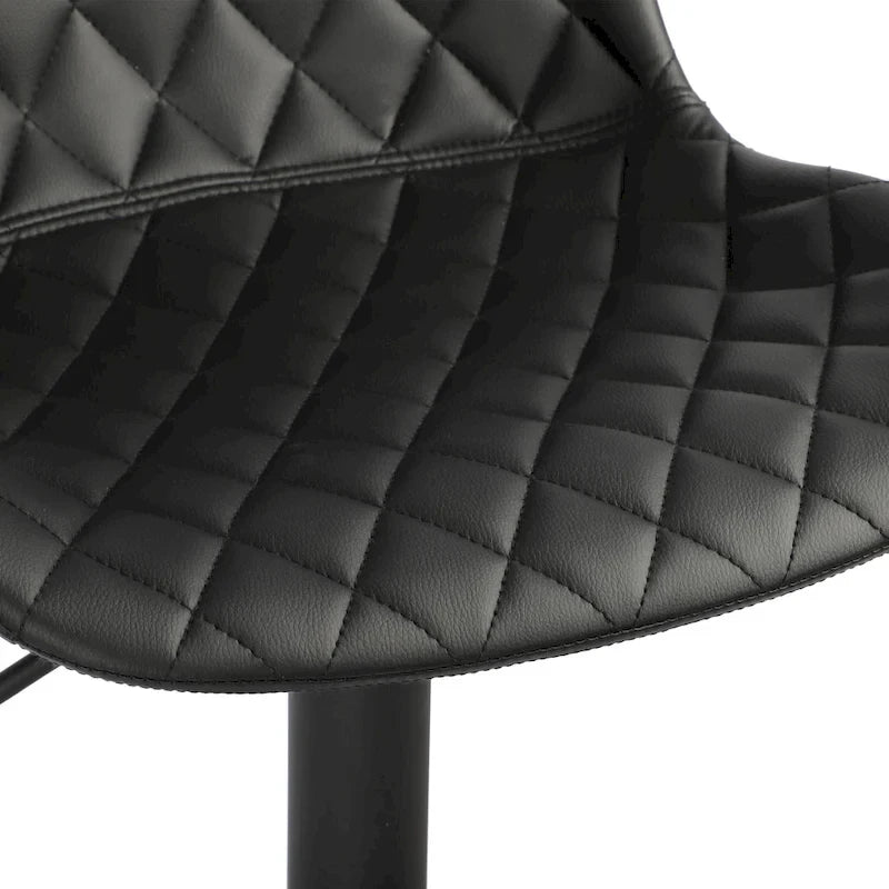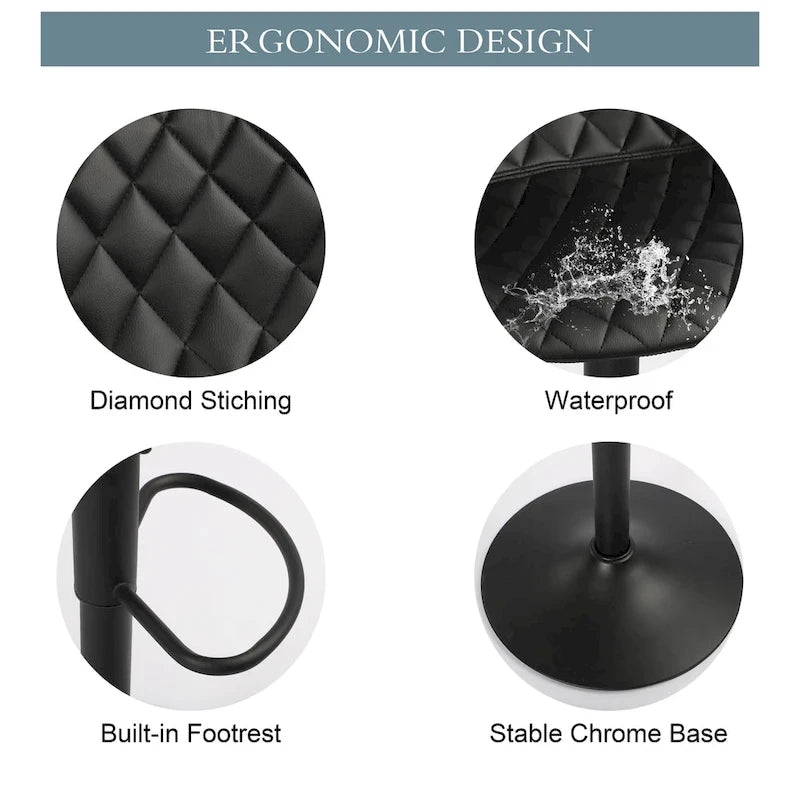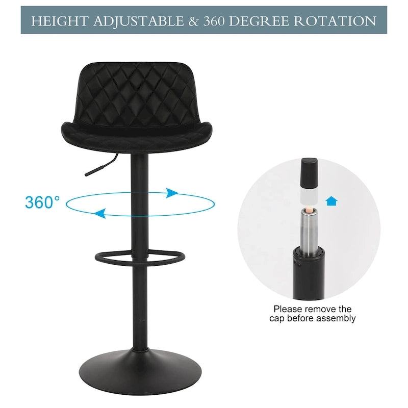 Designed with a seat with diamond stitching, this all black bar stool will upgrade your kitchen or bar space with the modern style. With ergonomic polypropylene construction, the upholstered seat provides effective support and added comfort. The PU leather upholstery offers skin friendly touch and is easy to clean. The 16.14 inches metal base ensures stability and safety. With a 360 swivel seat, the seat height can be adjusted from 22 to 30.5 inches to match from counter to bar height table. The assembly can be completed within five minutes by following the instructions. Suitable for kitchen island, counter or bar space.
