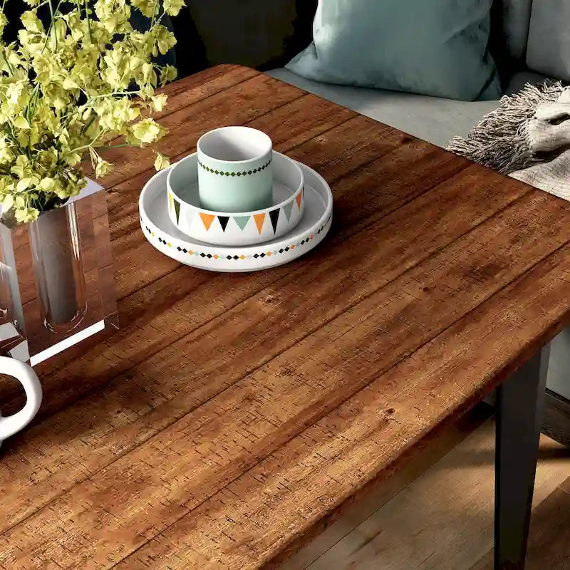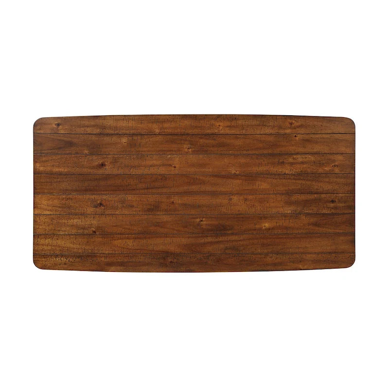 Create a stylish dining area with this mid-century modern dining table. The plank-style tabletop with a rounded edge is a smooth veneer, making it easy to clean. Tapered and flared legs are a slender look.