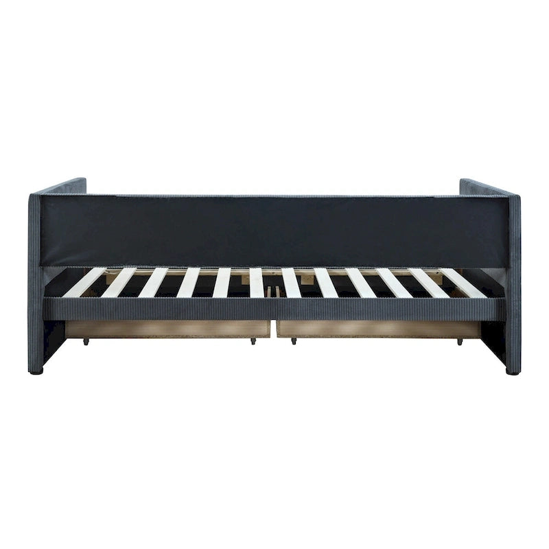 Grey Corduroy Twin Daybed with Drawers and Wood Slat Support