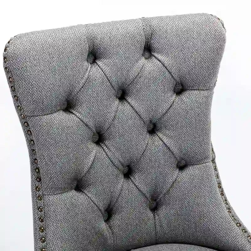 High-end Tufted Solid Wood Contemporary Flax Upholstered Linen Dining Chair with Wood Legs Nailhead Trim 2-Pcs Set