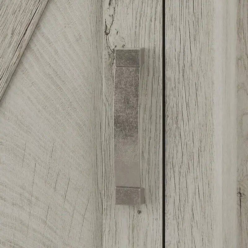 - Diagonal accents, a post leg design and Weathered Nickel hardware present a modern farmhouse style