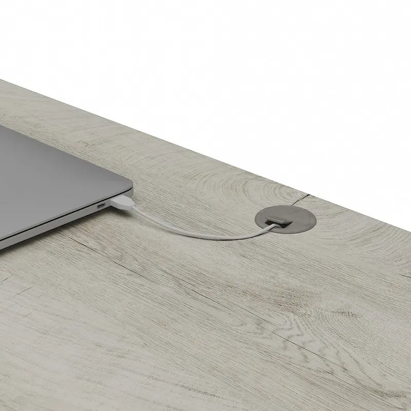 - Corner desk surface includes built-in wire management to keep cords and cables out of the way