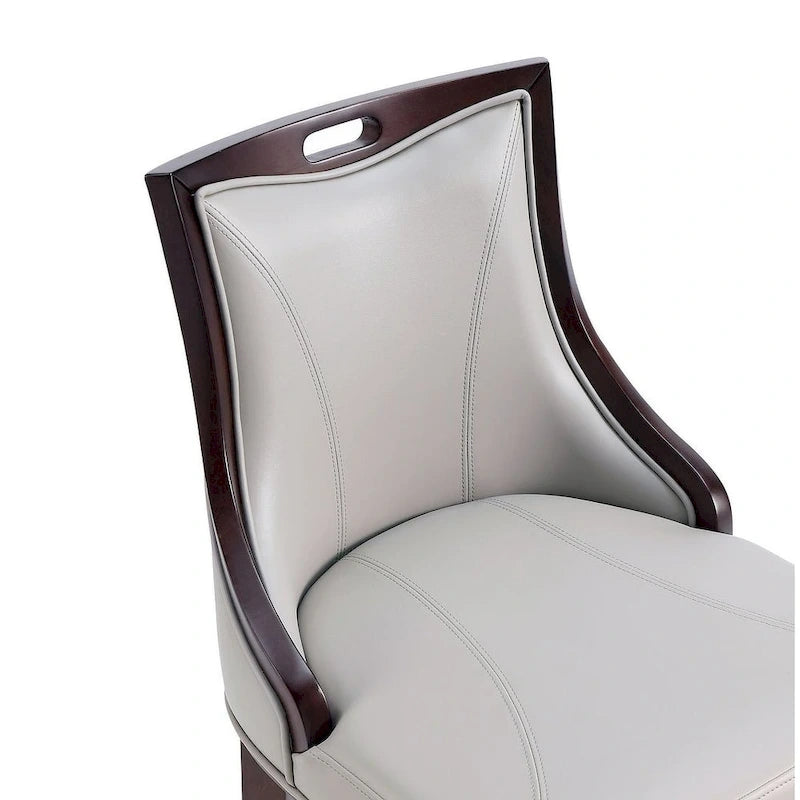 Subtle design, boldly executed. Sleek and graceful, this elegant bar stool is all about refined curves. Featuring a subtle hourglass silhouette, the rich walnut-finished wood frame is simple yet classic, taking on an eye-catching, tailored look that's utterly sophisticated.Traditional Barstool with Backseat Perfect for Bar and Kitchen Use. Set of 3 Measures: 19 in. Length, 41 in. Height, 22.5 in. Depth. Frame Made of Solid Beech Wood with Rich Walnut Finish. Upholstered in Faux Leather with Foam Padding. Unique Handle Design for Easy Mobility with Semi Linear Stitching. Includes Footrest Base Seat Height: 27 Delivered to you Fully Assembled! No Assembly Required! Dimensions: 19 in. Length, 41 in. Height, 22.5 in. Depth.