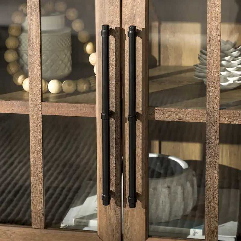 Rustic and farmhouse elements combine beautifully to create this charming TV console from Middlebrook Designs. Featuring adjustable shelves and cord management options, this console makes organizing media components, movies and games effortless and stylish. Four framed tempered glass doors feature soft-close hinges, metal corner accents, and elongated handles. This console is sure to become a favorite in your modern farmhouse.