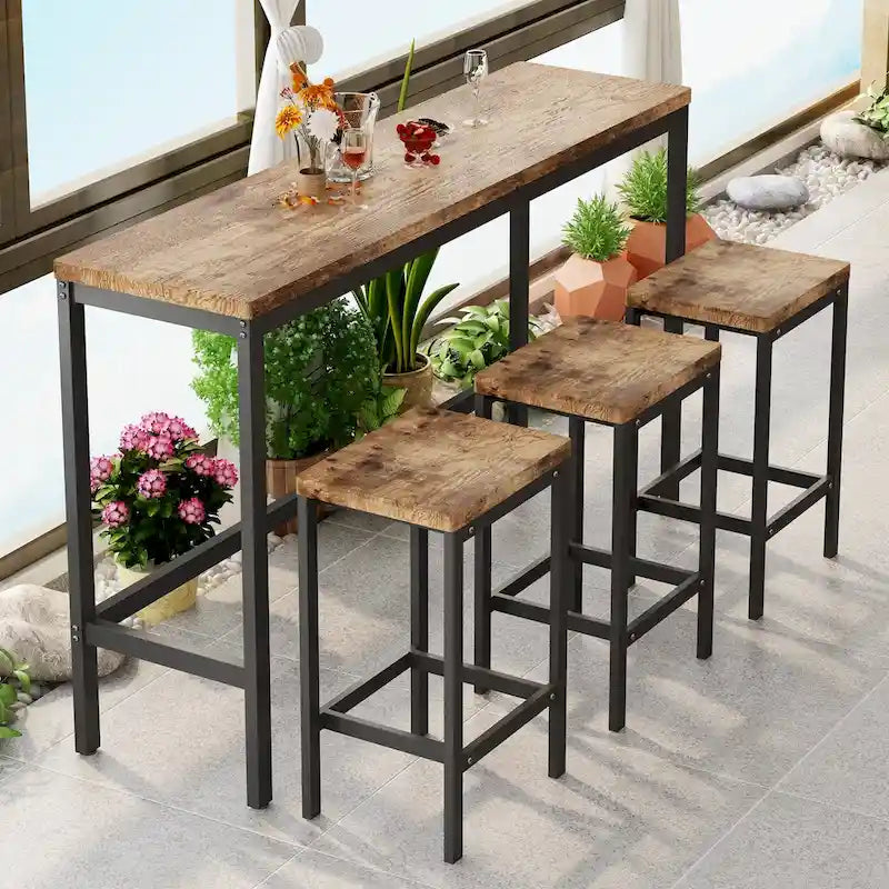 Modern Design Kitchen Dining Table, Pub Table, Long Dining Table Set with 3 Stools, Easy Assembly