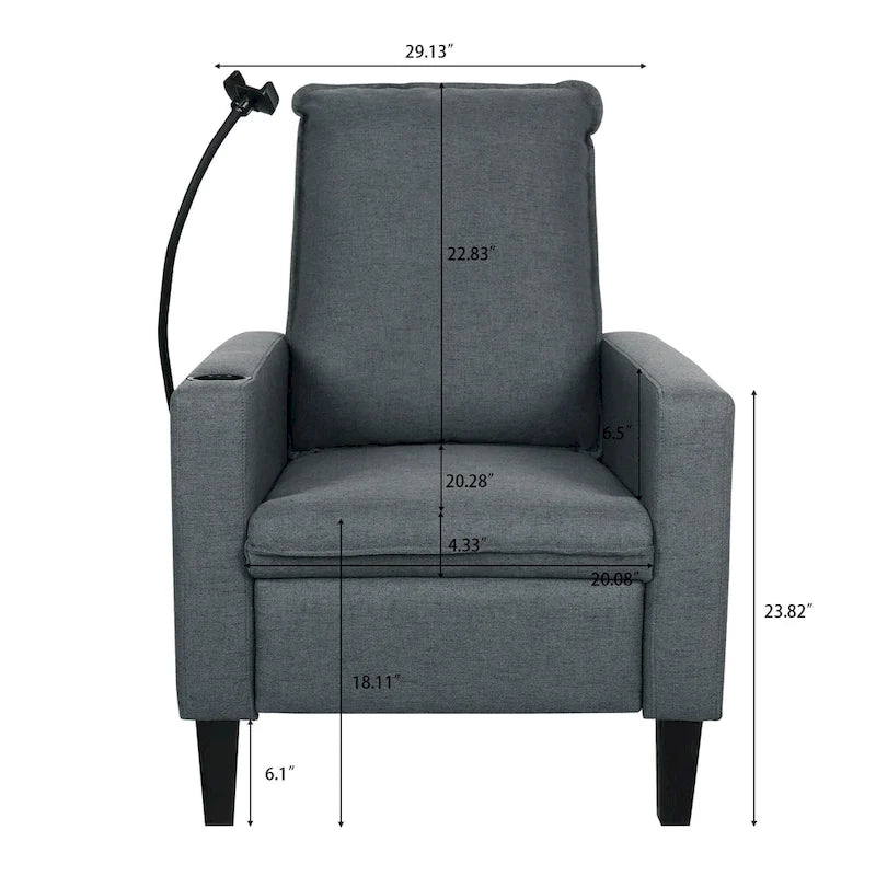 Modern Fabric Manual Recliner with Phone Holder, Cup Holder, Footrest