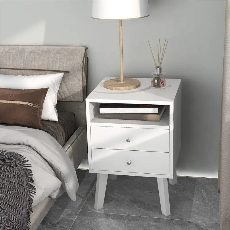 - With 3 tiers storage space, the white night stand is just the right size for everyday use and provides both open and private storage space. As a nightstand, it will accompany you through the pleasant night and offers a great place for a lamp or alarm clock. As a sofa side table, it can hold your hot cups, books, decorative items and remote control within your finger reach. Your living space is sure to be much more neat and tidy instantly and easily with this white night stand.
