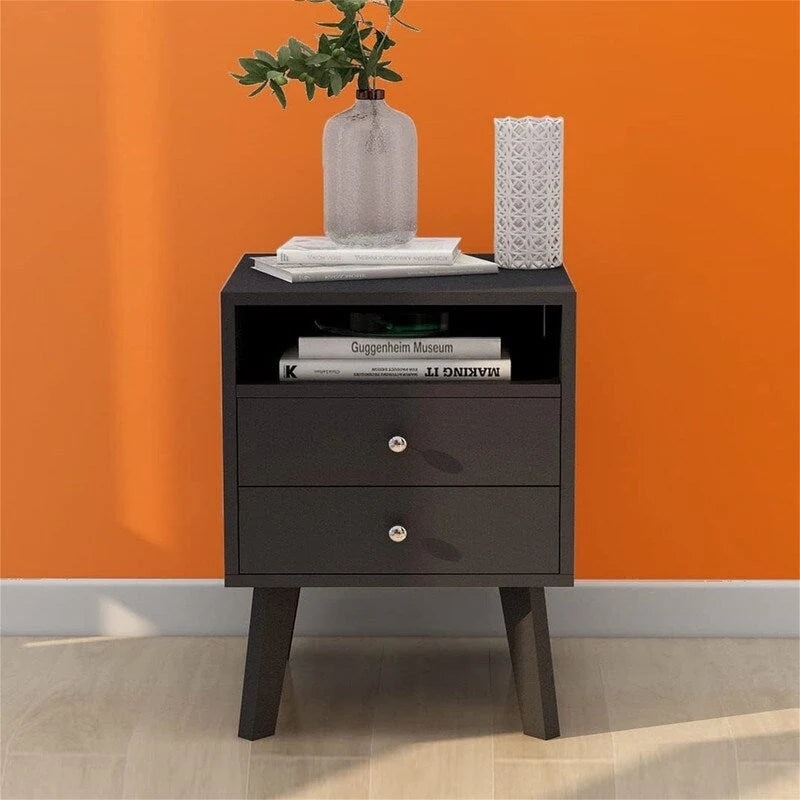 - The night stand is made of high-standard material MDF wood with UV paint, which is wear-resistant and waterproof for the long-term use. And the four table legs are rubber wood. The surface with UV paint is easy to clean and durable enough for lasting beauty. The water stains and dirt on the night stand can be easily wiped off with just a gentle wipe.