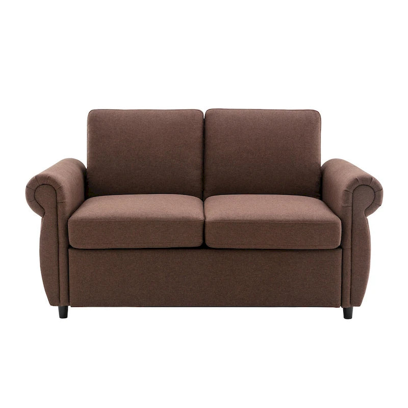 Roomfitters 57.9 Pull-Out Sleeper Sofa Loveseat with Twin Size Memory Foam Mattress, Two USB Charging Ports