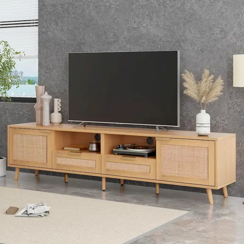 - Modern Rattan Design: With its sophisticated rattan accents and contemporary craftsmanship, this TV stand adds elegance and charm to any room.