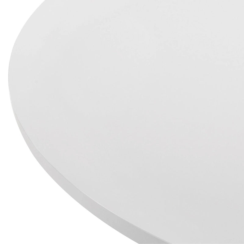 - [SLEEK AND STURDY DESIGN]: The dining table features a round table top with a white finish and a solid rubberwood pedestal base, providing stability and visual appeal.