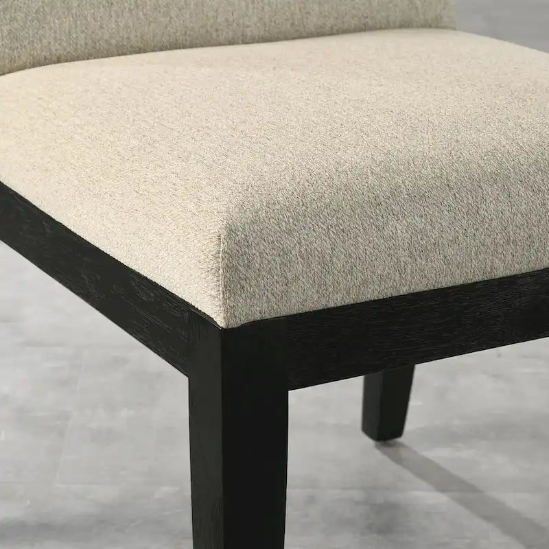 - [COMFORTABLE AND STYLISH CHAIRS]: The set of chairs boasts solid rubberwood legs, beige fabric upholstery, and thick foam cushioning for optimal comfort and style. Two chair colors are available: Ebony/Beige, and Driftwood/Beige.