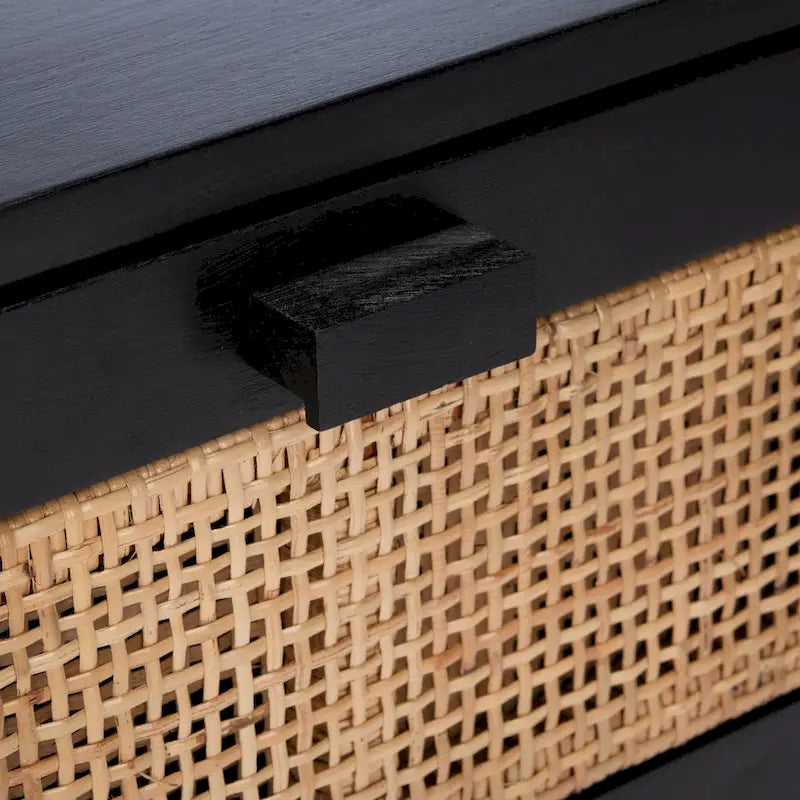 Bring Bahama island vibes to your bedroom decor with this Nightstand. Featuring two rattan doors beautifully framed with matching finished mindi wood, Hedwig's open crossed base adds intriguing depth and movement to any contemporary coastal interior.