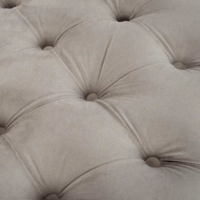 Create an instant oasis in any living room with this decadent tufted rectangular bench. Extravagant yet versatile, its sumptuous upholstery is paired with a classic brass finish on chic modern legs. Use it as a coffee table or extra seating.