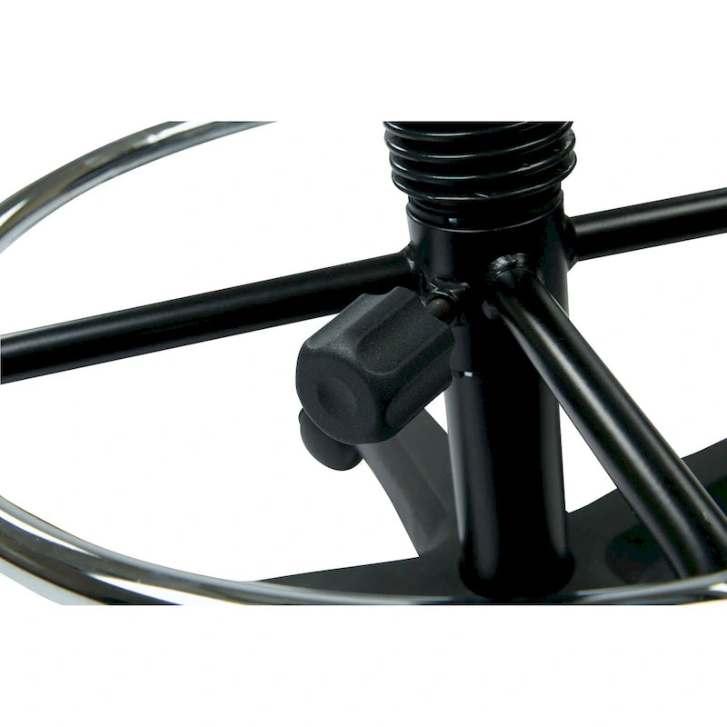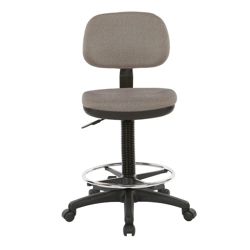 This drafting chair has a stylish look with a modern chrome finish base to match. It is counter height and has a height adjustable footrest and one touch pneumatic seat height adjustment. It also has back height and seat depth adjustment with heavy duty nylon base.
