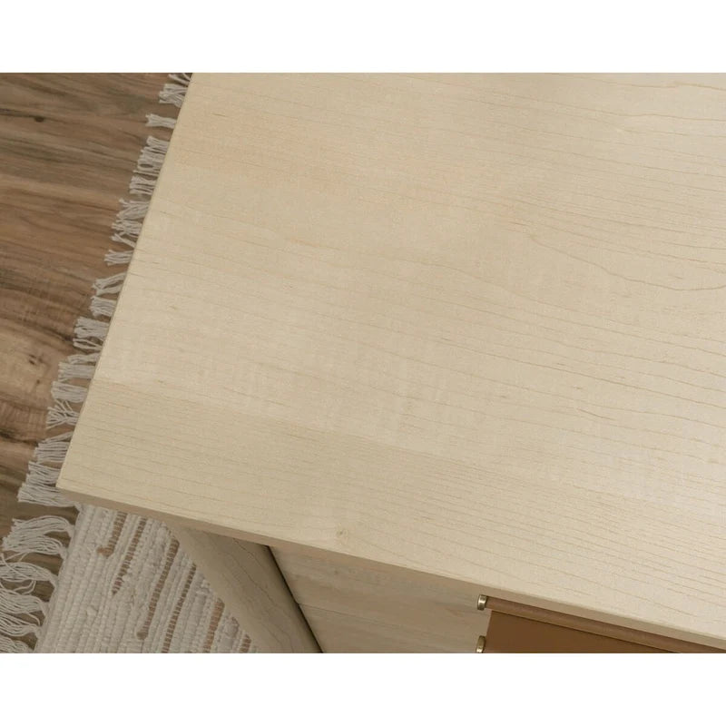 Your home office should reflect your style. What is better than an executive desk that allows your dcor to shine? This executive desk with storage from the Whitaker Point collection features a strong lightweight 1 panel construction that provides you with ample room for all your must-have desk supplies: your laptop or computer monitor, a cup full of pens and pencils, and even a little room for some home dcor items too. This pedestal desk features three small storage drawers with full extension slides for easy access storage of miscellaneous items like a stapler, envelopes, and paper clips. The lower file drawer holds letter or legal-size hanging files so your executive computer desk will always be organized and clutter free. The large middle drawer/shelf features a flip-down panel for keyboard/mouse. This executive desk with drawers also includes a hidden storage area behind the right door, with an adjustable shelf to provide flexibility and accommodate items of various sizes. Two desktop grommet holes and cord pass throughs keep electrical cord clutter at bay. Finished in Natural Maple, this beautiful double pedestal executive desk will have you feeling motivated to get the job done.