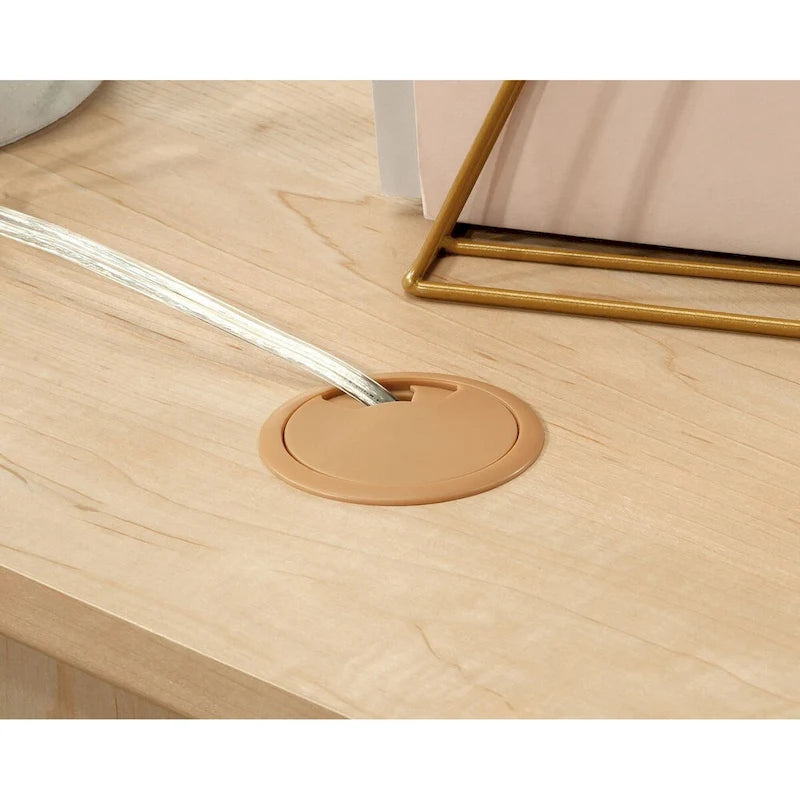 - Desktop has two grommet holes and cord pass-throughs for electrical cord access.